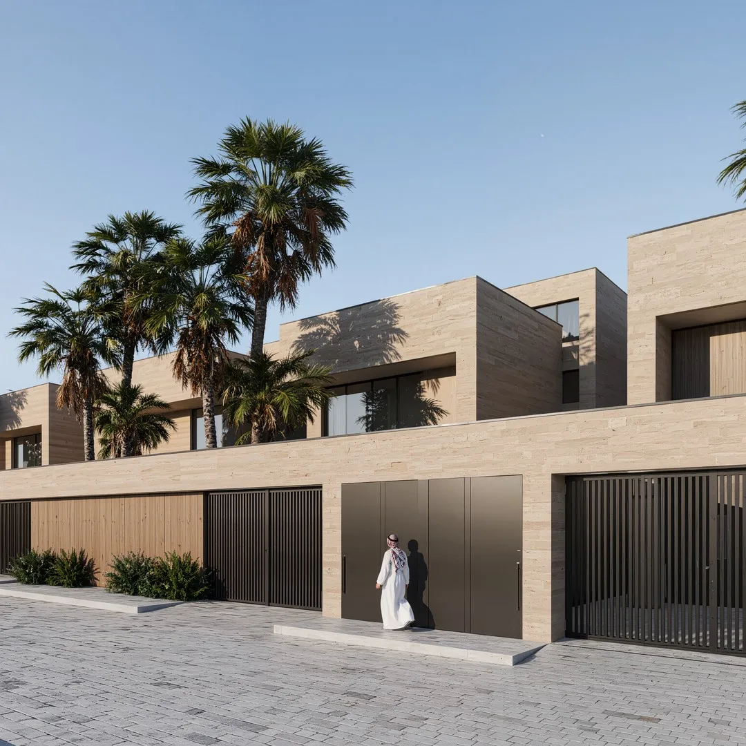 we are offering a competitive prices per Meter square , as our villas considered all spaces to comfortable with all families culture , in addition the external villa walls are very well insulated which make them avoid to transfer the heat from out side the villa to inside which participate on energy efficiency along with electricity low consumables , and also the fence wall has considered the privacy all around the villa to allow the end user to elaborate his external spaces as he wish with out bearing in mind the privacy issue